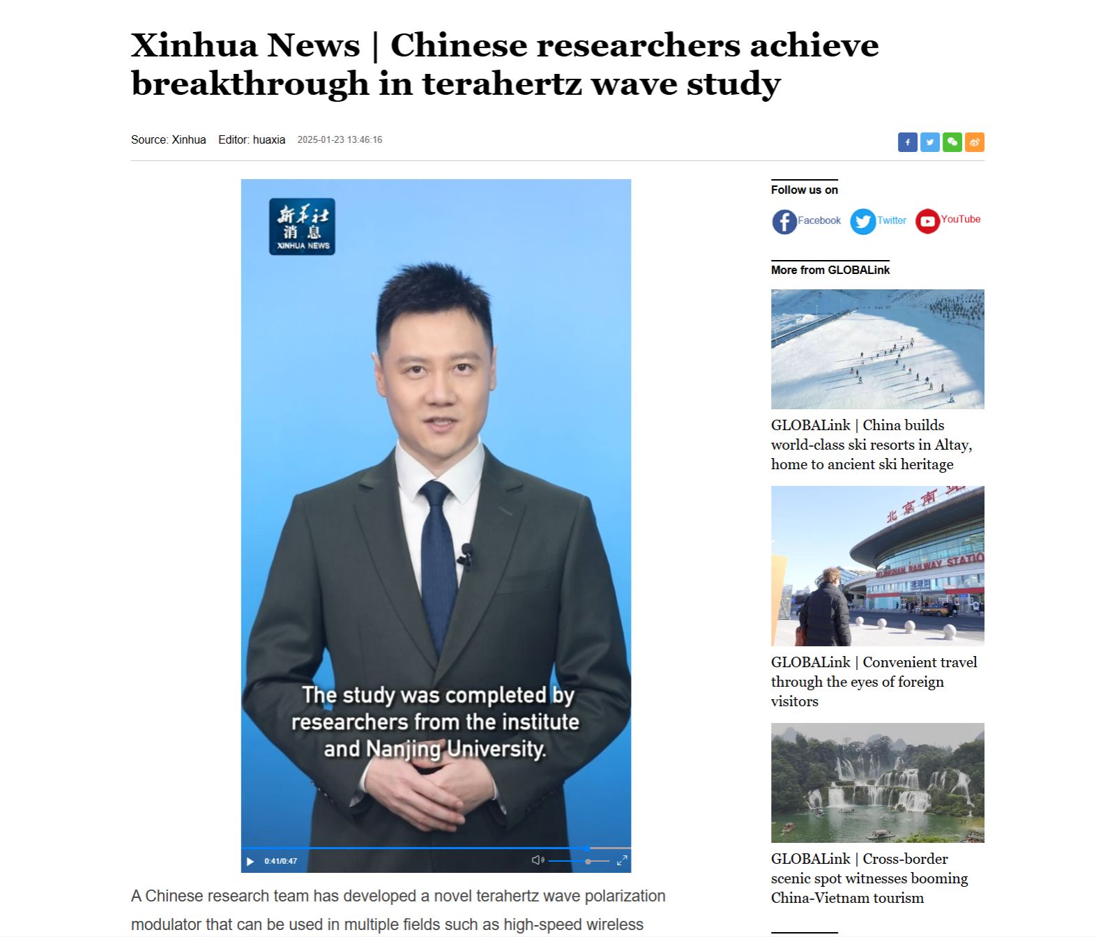 Xinhua News reports on NJU's research breakthrough in terahertz wave study