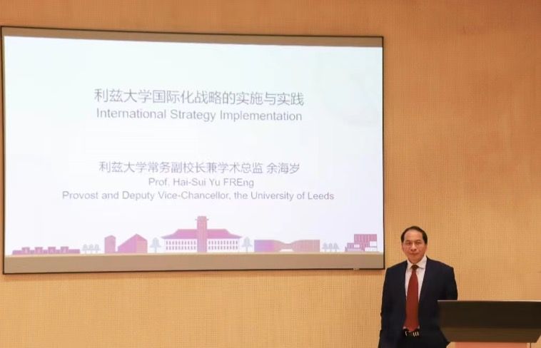 On September 21, 2023, NJU launched the International Vision and Competence Enhancement Program for Management Staff. The inaugural event of this program featured a lecture by Professor Yu Hai-Sui, the Provost and Deputy Vice-Chancellor of the University of Leeds (UoL). Professor Yu Hai-Sui shared his experience and insights on the implementation of the international strategy at UoL. Vice President Wang Zhenlin of NJU hosted the lecture. More than 60 participants from 39 different faculties and departments attended this event.