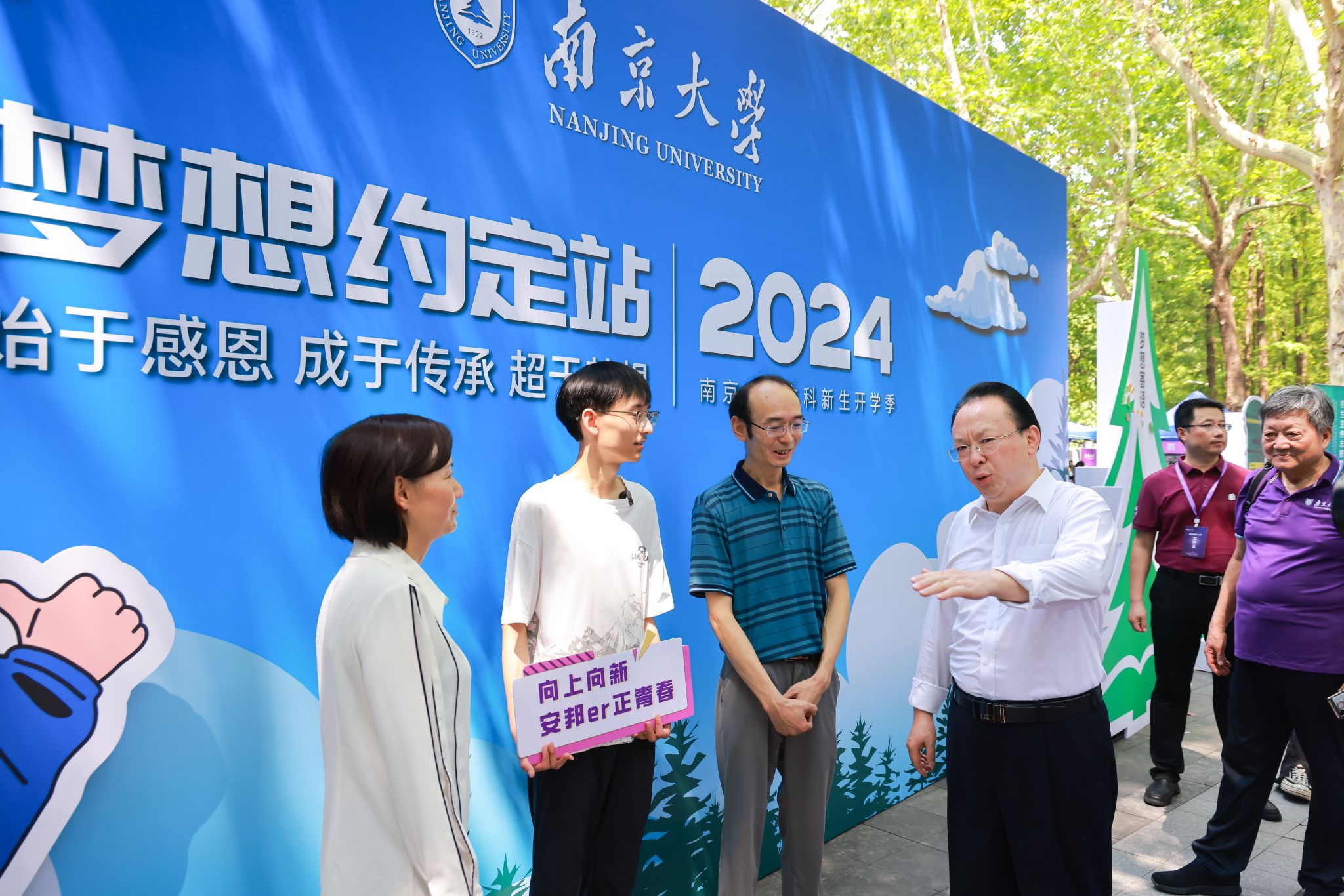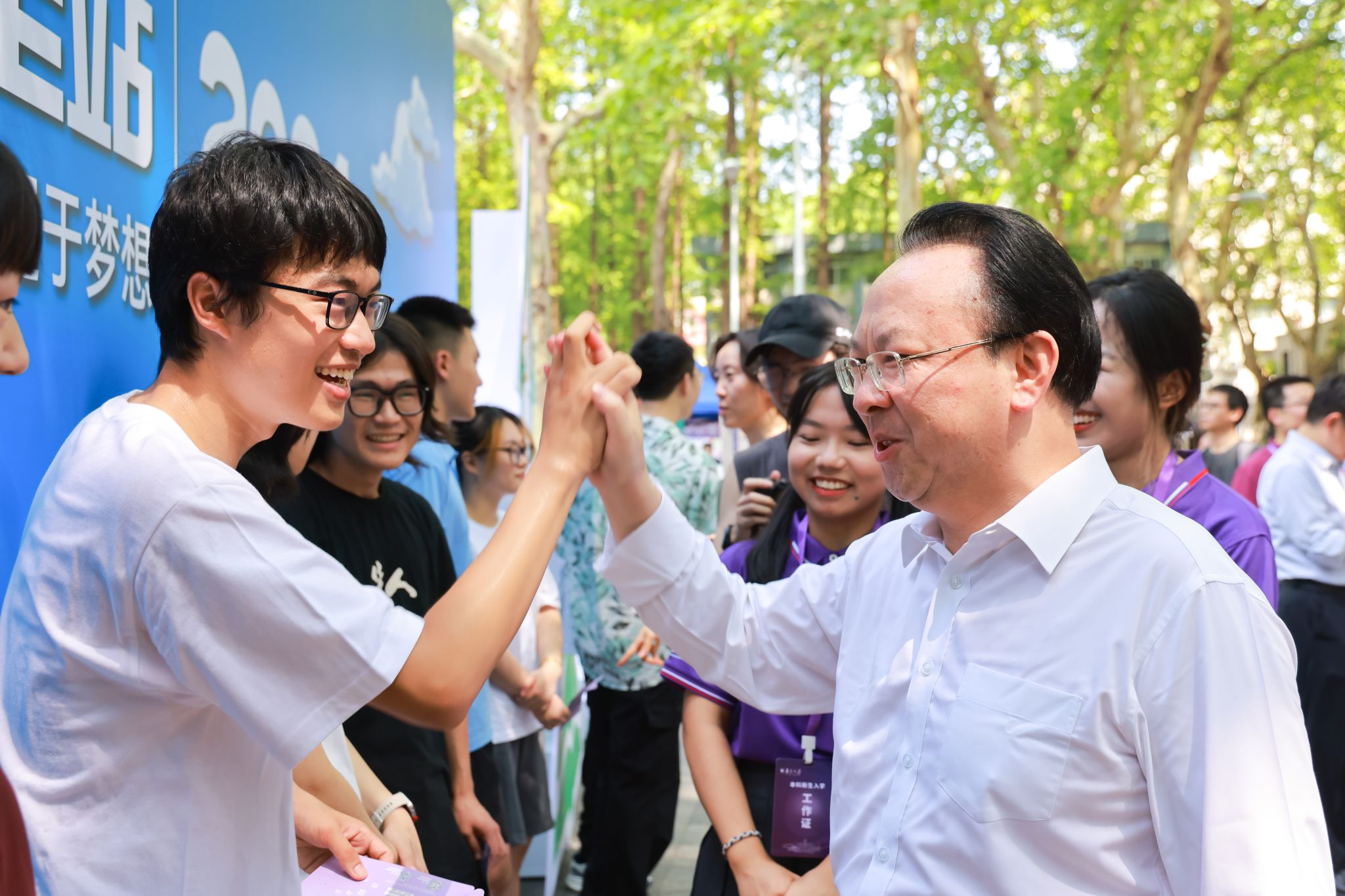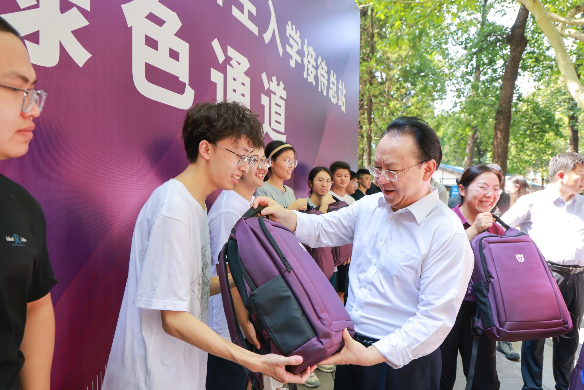 On August 24, Tan Tieniu, Secretary of the CPC NJU Committee and Academician of the Chinese Academy of Sciences, visited the Gulou campus to welcome the new undergraduate students of the Class of 2028 . He warmly greeted the new students and extended his regards to the faculty, staff, and volunteers.