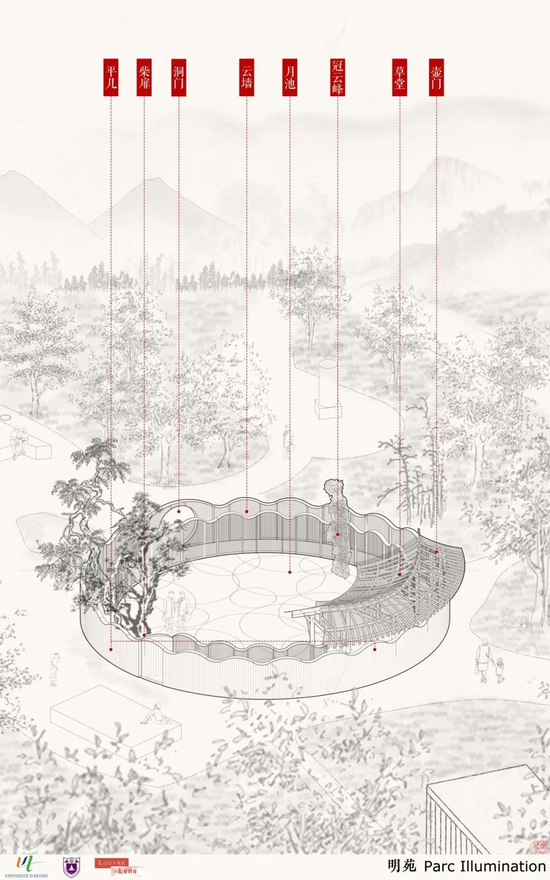 On July 5, 2024,  Parc Illumination or Ming Yuan (明苑), a Chinese-style garden, opened at the Louvre-Lens, France. Tan Zhemin, President of NJU, and his delegation attended the opening ceremony. The project is a joint effort between Nanjing University and the Université D'Artois in France for more than ten years. Designed by Leng Tian, a professor at  NJU School of Architecture and Urban Planning, the project marks the first large-scale art installation designed and built by a Chinese architect in France. It is a new symbol of cultural exchange between China and France.