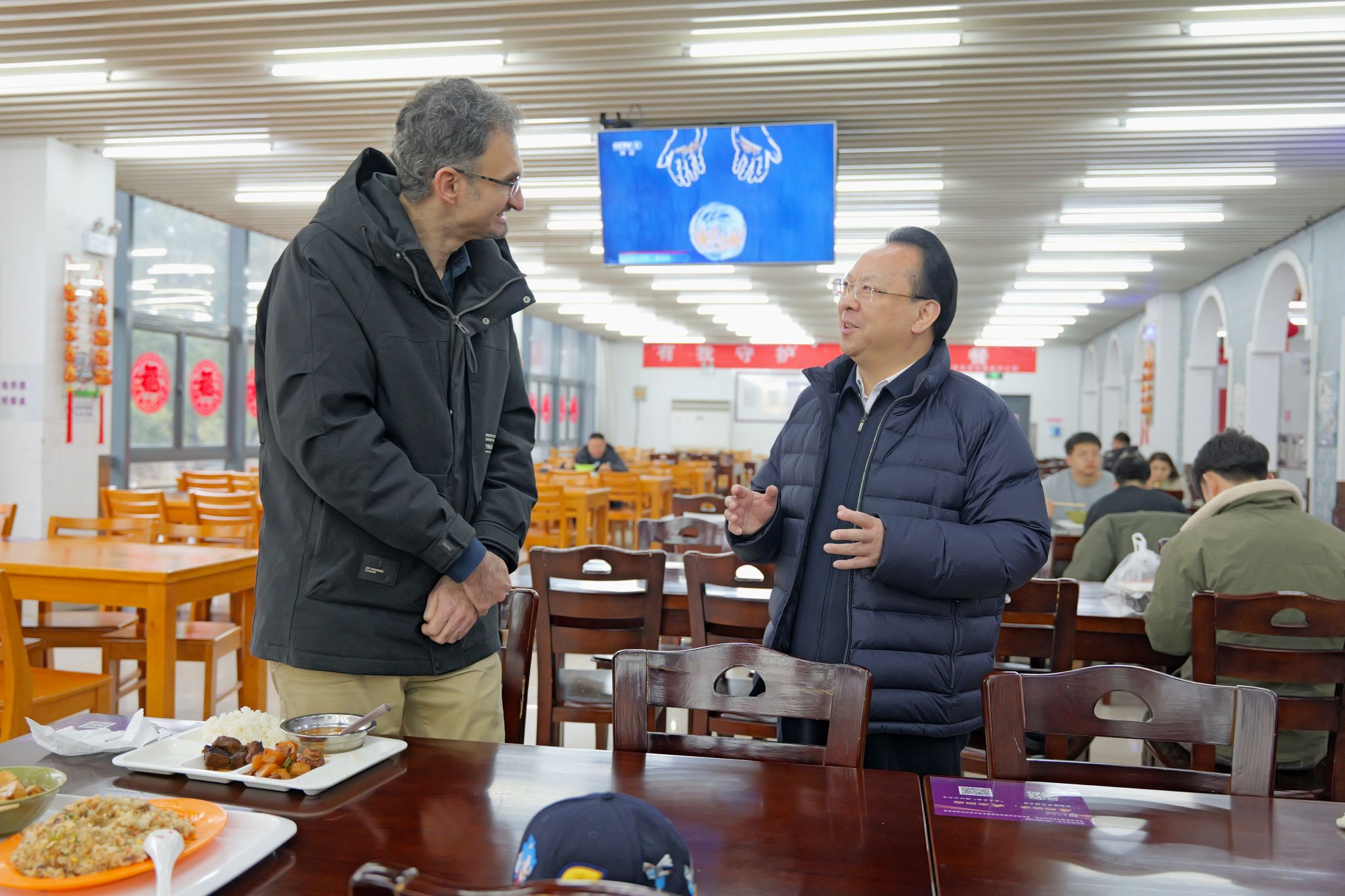 Lastly, he visited a canteen on campus and communicated with teachers and students to ask for their advice and suggestions. He asked the canteen to increase the supply of New Year's seasonal dishes during the Spring Festival, prepare New Year's Eve dinner, and carefully arrange New Year's Eve activities, so that teachers and students staying on campus can also experience a heartwarming Chinese New Year.