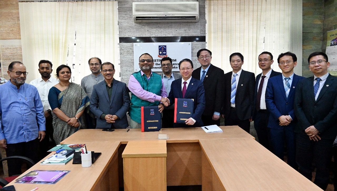 In the afternoon, Tan visited the University of Dhaka and met with Vice-Chancellor Niaz Ahmed Khan. Tan stated that both the University of Dhaka and Nanjing University are top comprehensive universities with highly compatible academic structures and broad prospects for future collaboration. Vice-Chancellor Khan fully agreed, and both parties signed a memorandum of understanding to promote diverse cooperation in international Chinese education, environmental governance, and economics and management. During the visit, Tan attended a special session on studying at NJU, introducing the university to students and answering questions about academic planning and campus life.