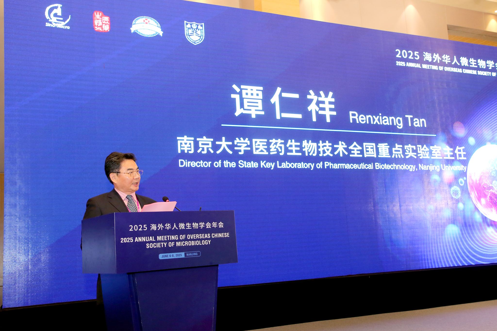 From June 7 to 8, the 2025 Annual Meeting of Overseas Chinese Society of Microbiology was held in Nanjing. The theme of this conference was "The Impact of Microorganisms on Health and Environment," focusing on international scientific frontiers, building a platform for academic exchange and cooperation between China and foreign countries, and promoting the integration and development of global microbiology and related disciplines. Tan Zhemin, President of Nanjing University and Academician of the Chinese Academy of Sciences (CAS), attended and addressed at the opening ceremony.