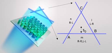 三通道手性超构表面直接实现偏振测量。不同于其他工作基于不同超构表面测量不同偏振的强度来解算斯托克斯参量,研究人员提出通过单超构表面直接测量强度和相位来解算偏振信息。研究人员在原先手性超构表面的基础上(Nano Lett. 21,1815 (2021), Optica, 9, 1314 (2022))进一步设计了一种三个偏振通道复用的手性超构表面,可独立调控两个正交圆偏振通道(R-L & L-R)和一个同偏振通道(R-R/L-L)。如图1所示,三个偏振通道分别形成三条聚焦线,通过聚焦线的强度可计算圆偏振基矢的强度对比,通过考察交点的强度则可推算出圆偏振基矢之间的相位差,从而解算偏振信息。其中手性超构表面的三通道偏振复用能力为实现高空间分辨率的偏振测量奠定了基础