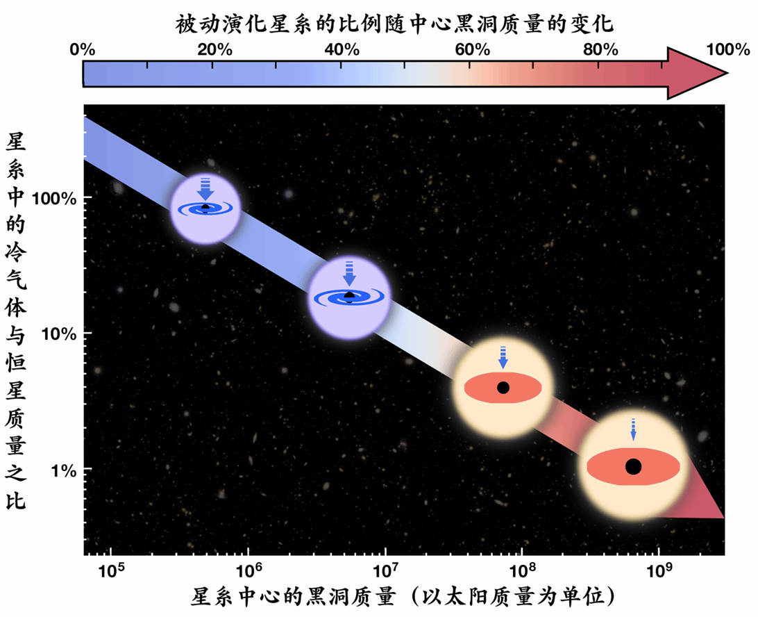 中心黑洞质量越大的星系其冷气体含量越低、成为被动演化星系的可能性也越高。
