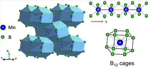 图1. MnB4的晶体结构示意图。Mn和B形成类似于富氢元素超导体的笼状结构单元。
