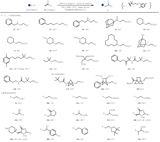 Table 2 | Substrate scope of deaminative Giese-type reaction.