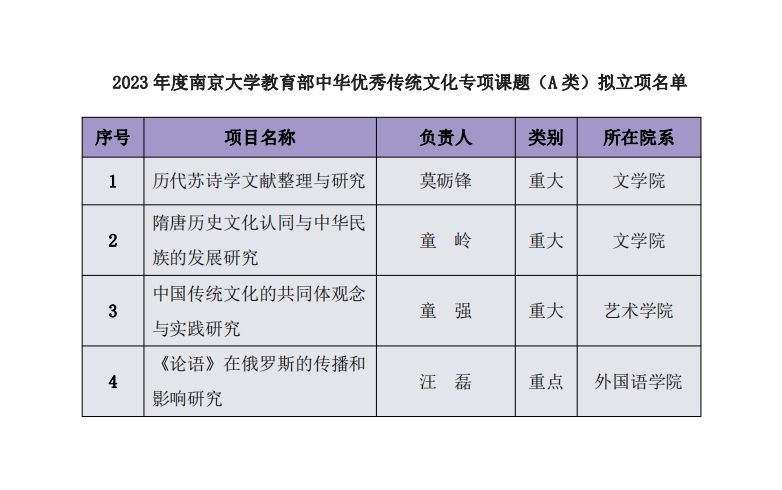 近日,教育部网站发布了中华优秀传统文化专项课题(A类)评审结果的公示,凯发k8官网的重大项目为3项,排名全国第1;重大项目和重点项目总数4项,排名全国第2,C9高校第一。
