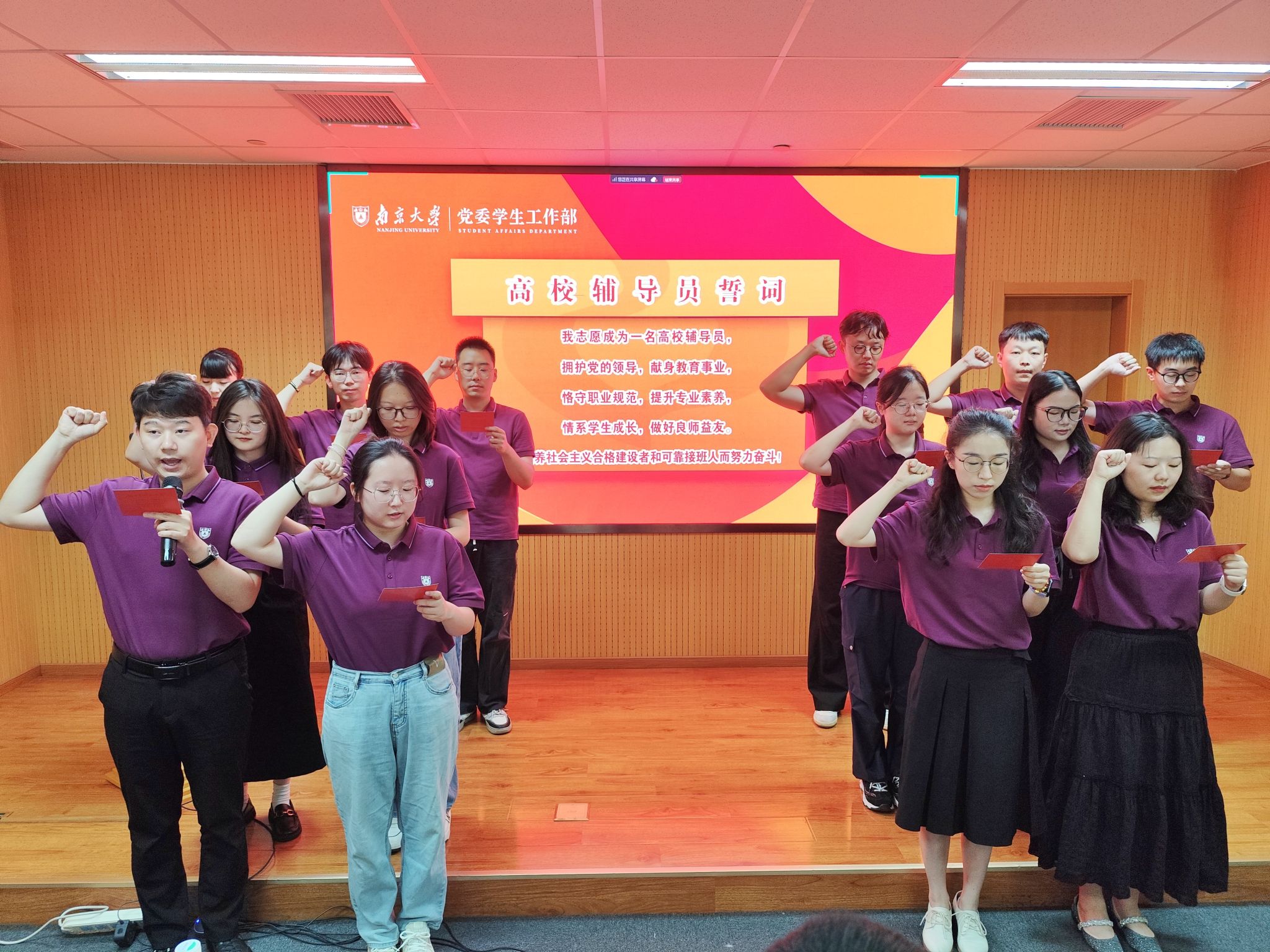 8月20日,凯发k8官网2025年新任专职辅导员入职仪式暨岗前培训开班会在仙林校区举行,苏州校区新入职辅导员线上同步参会。党委学生工作部部长李浩、副部长李宁出席本次活动,全体新入职辅导员参加培训。
