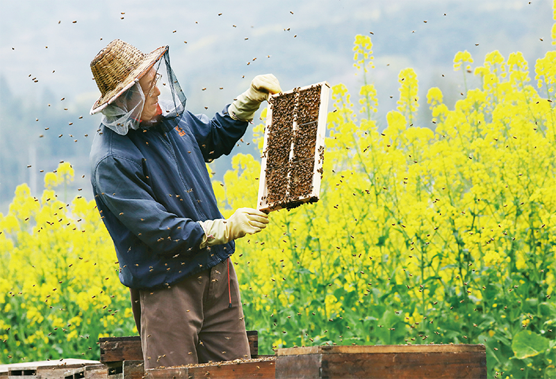 发展产业是实现脱贫的根本之策。要因地制宜,把培育产业作为推动脱贫攻坚的根本出路,强化稳定增收帮扶措施。图为2020年3月8日,在重庆市梁平区石安镇联丰村七组,蜂农正在油菜田边放养蜜蜂。目前,该镇养蜂村民达600多户,蜜蜂数量达8000多群,其中有60多户贫困户通过养蜂走上了脱贫致富的道路。 中新社记者 刘辉/摄